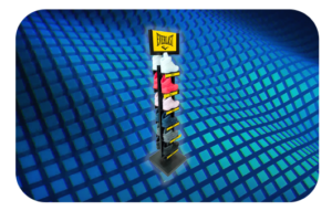 Exhibidor de gran tamaño, tiene el objetivo de captar la atención de los clientes, desde diferentes lugares en el punto de venta, obteniendo mayor visibilidad de los productos, este exhibidor es recomendado para grandes superficies ya que puede mostrar una gran variedad y cantidad de productos, normalmente son de alta resistencia ya que soporta más peso.