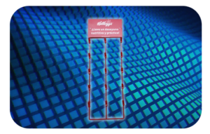 La estrategia está enfocada en estar dentro del espacio del área de cajas, para impulsar la venta cruzada o de impulso, el tamaño es pequeño y depende del espacio en el que se coloque.